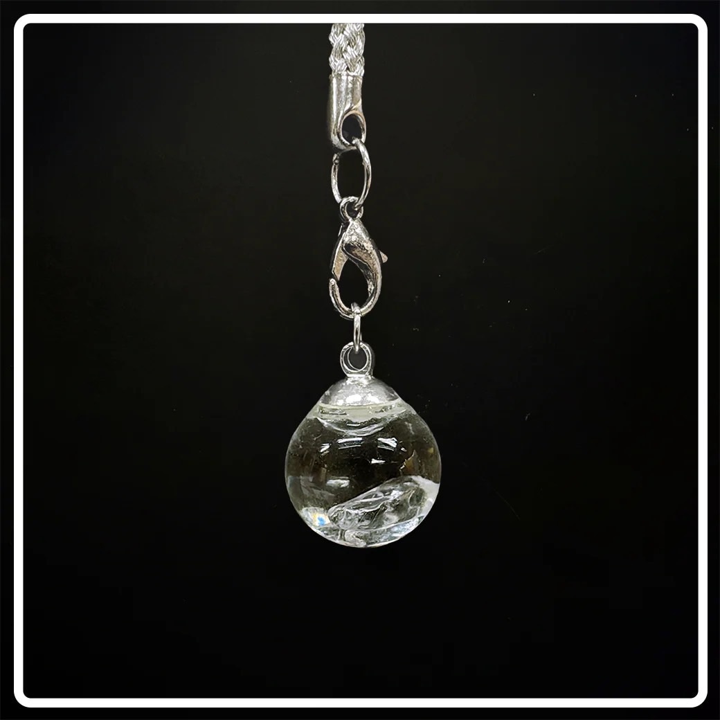 玉はガラスではなく、非常に割れにくい素材で透明、フックとストラップとシルバーのカラーで揃えております。